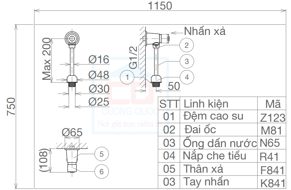 Bản vẽ kỹ thuật xả tiểu nam VG841