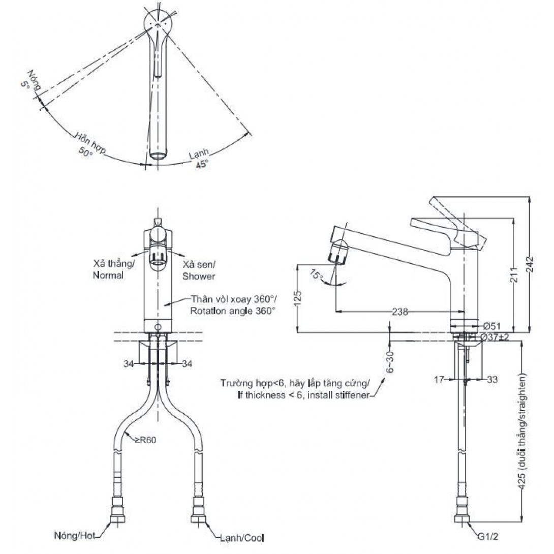 Bản vẽ kỹ thuật vòi bếp nóng lạnh TOTO TKS05303J