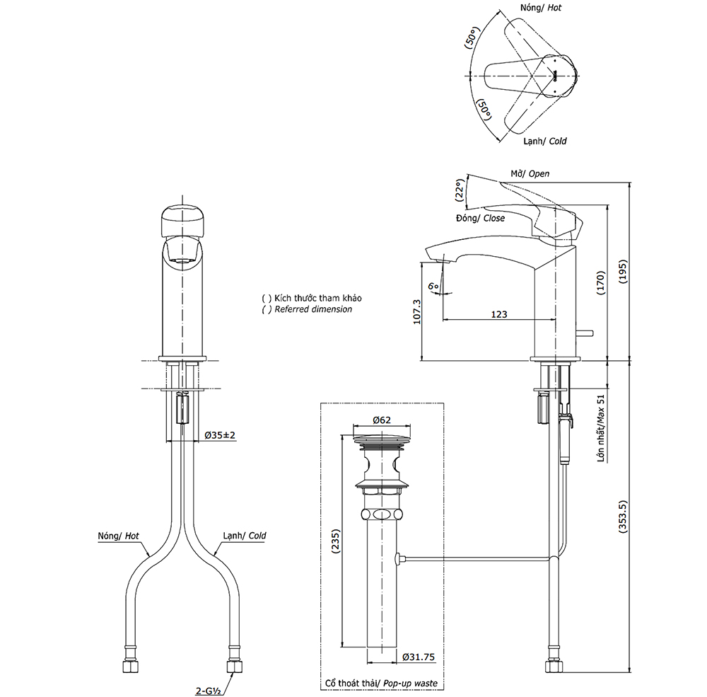 Bản vẽ kỹ thuật vòi chậu lavabo TOTO TLG09301V