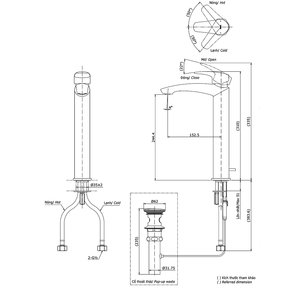 Bản vẽ kỹ thuật vòi chậu lavabo TOTO TLG09305V