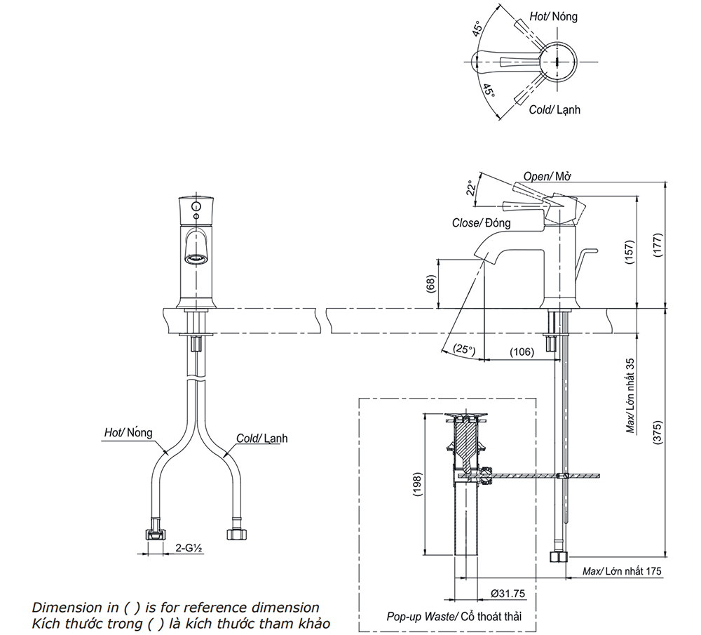 Bản vẽ kỹ thuật vòi chậu lavabo TOTO TLS02301V