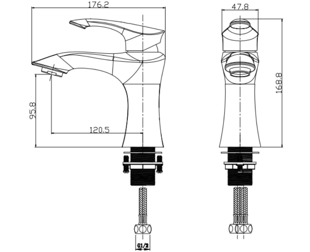Bản vẽ kỹ thuật vòi chậu lavabo Basic Eden-LG nóng lạnh