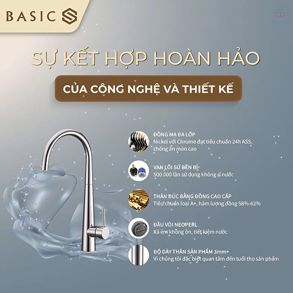 Không chỉ mang lại giá trị thẩm mỹ, vòi bếp Basic BK-64062 còn đảm bảo tính năng sử dụng đa dạng khi được trang bị hệ thống hai đường nước nóng và lạnh. Nhờ đó, người dùng có thể dễ dàng điều chỉnh nhiệt độ nước theo nhu cầu, vừa an toàn vừa tiết kiệm thời gian, đặc biệt hữu ích trong những ngày mùa đông lạnh giá hoặc khi cần rửa nhanh các vết dầu mỡ bám cứng.