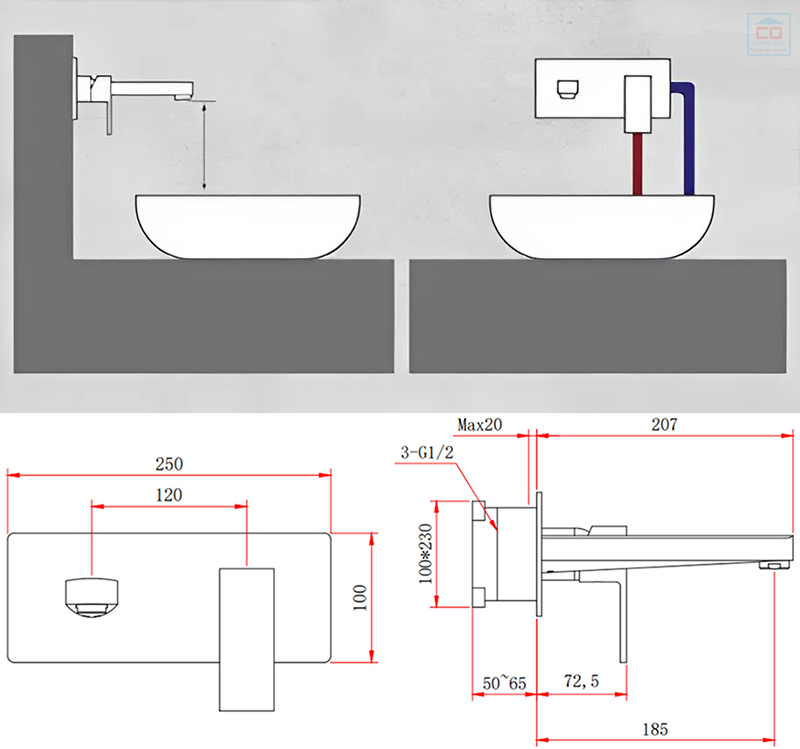 Toàn bộ phần đường ống được giấu kín trong tường, chỉ để lộ phần đầu vòi và tay gạt, tạo nên một bề mặt phẳng, tối giản và vô cùng tinh tế. Thiết kế này không chỉ giúp tiết kiệm diện tích, làm cho không gian trở nên rộng rãi và thoáng đãng hơn, mà còn giảm thiểu các chi tiết thừa, dễ dàng vệ sinh và giữ cho phòng tắm luôn sạch sẽ.