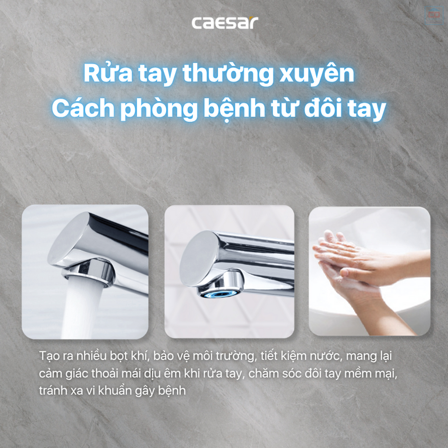 Vòi lavabo Caesar B191C được trang bị đầu lọc tạo bọt, giúp dòng nước chảy ra êm ái, không bắn tung tóe và đồng thời tiết kiệm lượng nước tiêu thụ đáng kể. Công nghệ này không chỉ giúp giảm chi phí sinh hoạt mà còn góp phần bảo vệ môi trường - một xu hướng được nhiều gia đình hiện đại quan tâm.