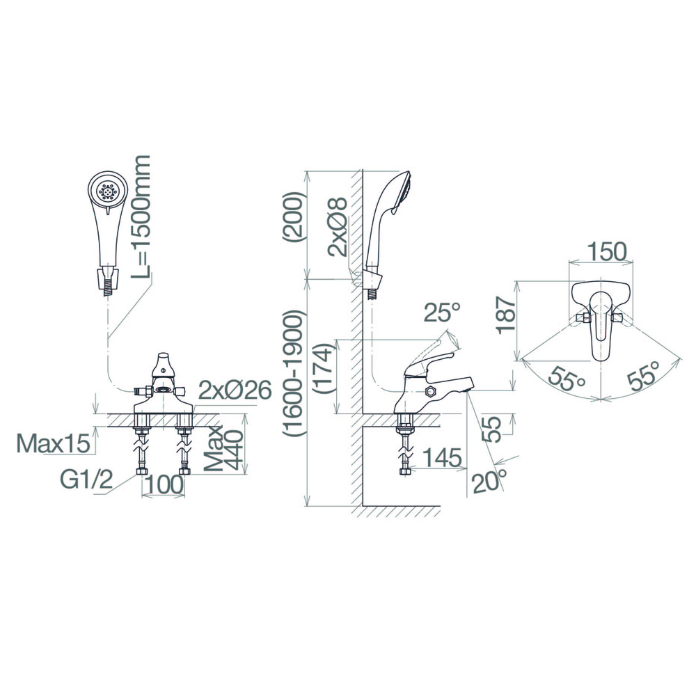 - Vòi chậu Viglacera VG326 là vòi nóng lạnh 3 lỗ kết hợp sen tắm.