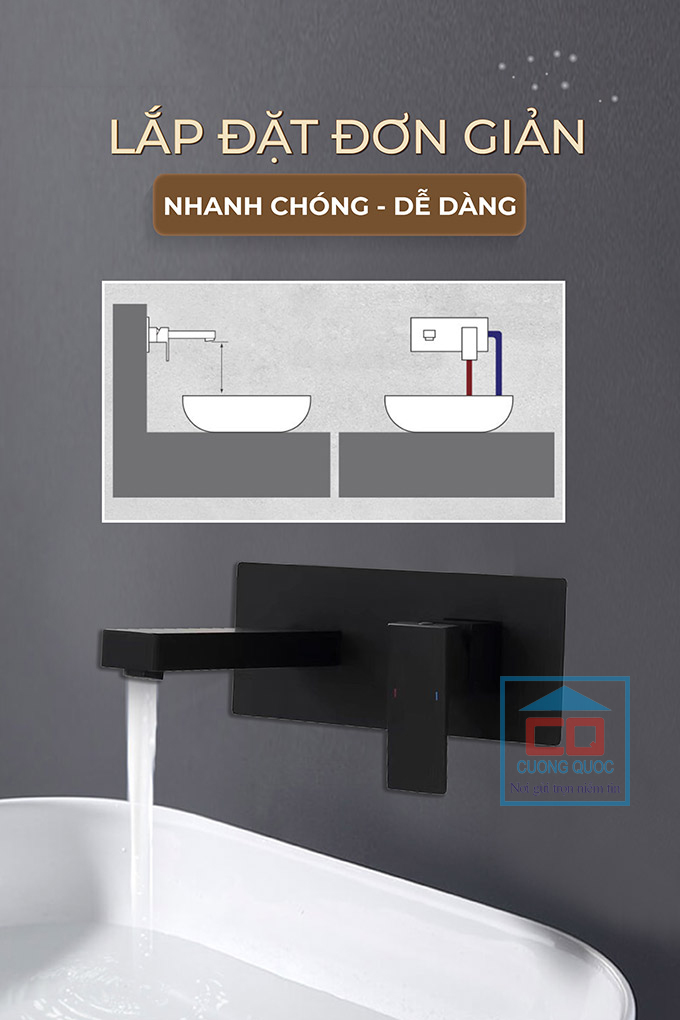 Vòi lavab Basic BW-46018B nóng lạnh phù hợp lắp đặt trong: