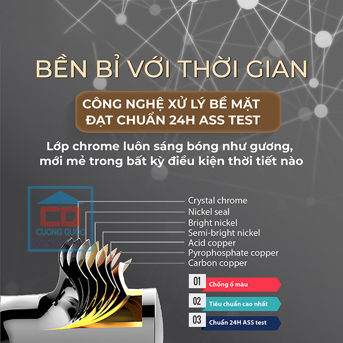 - Lớp mạ Chrome - Niken đạt chuẩn 24h ASS.