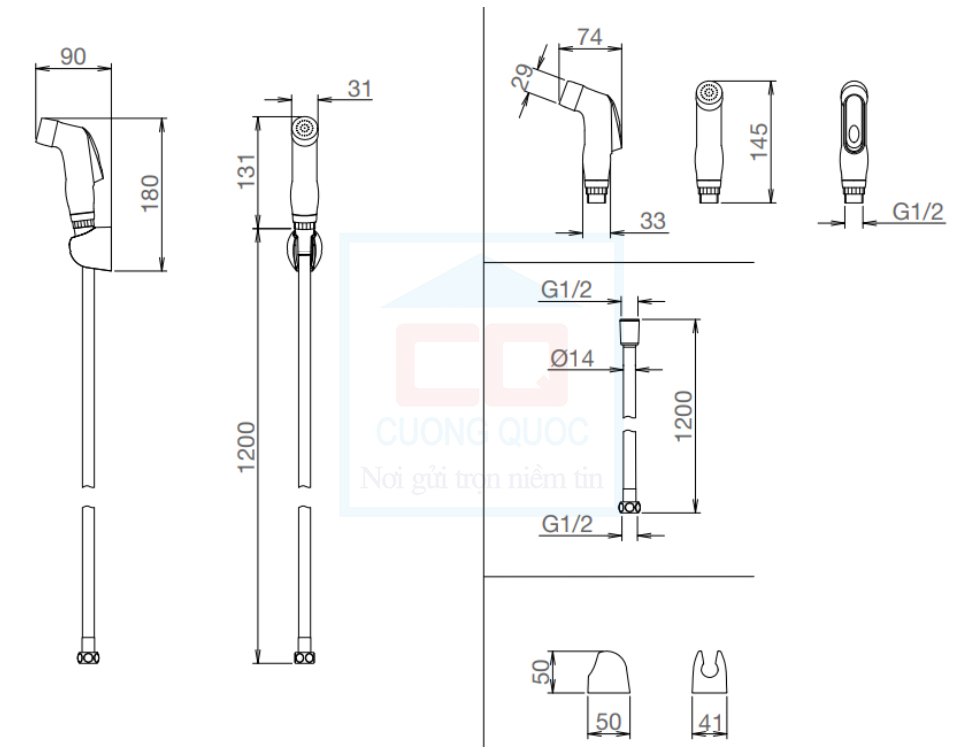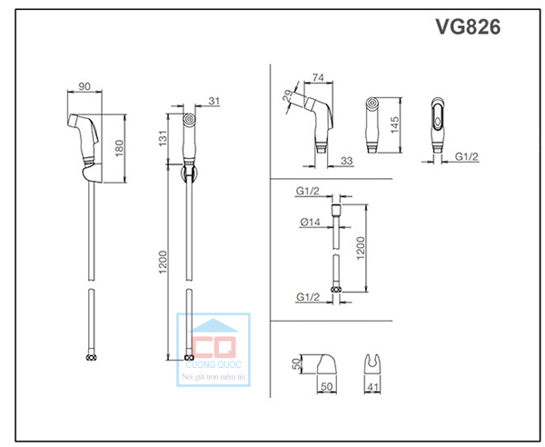 Bản vẽ kỹ thuật vòi xịt nhà vệ sinh Viglacera VG826